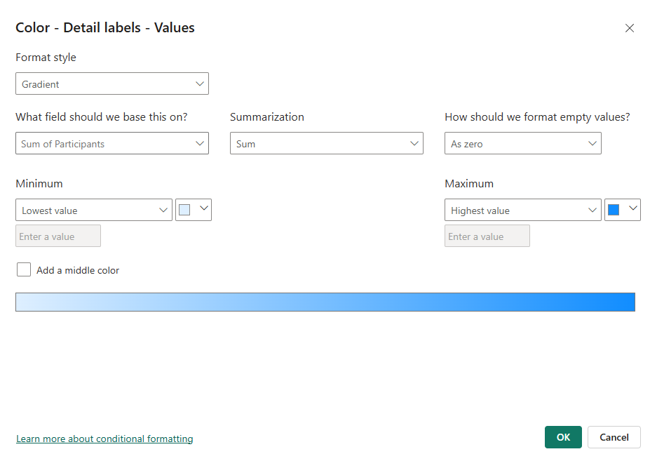 Clicking the fx button opens up a color formatting window. It looks a bit complicated the first time you see it, but we’ll go through it together.
