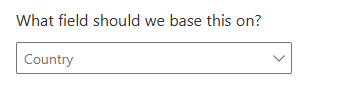 Then, we’re going to select Country in the ‘What field should we base this on?‘ dropdown, because the slices of our pie are our countries.
