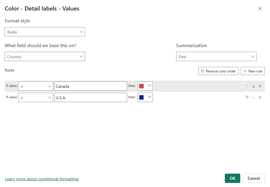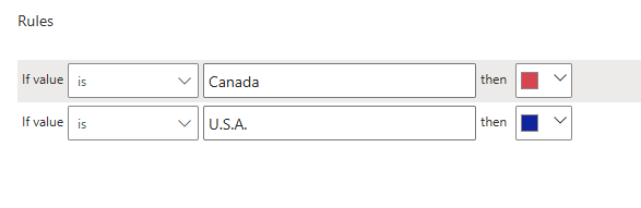Then, we’re going to set up 2 rules that sets colors for each of our countries (the U.S. and Canada).